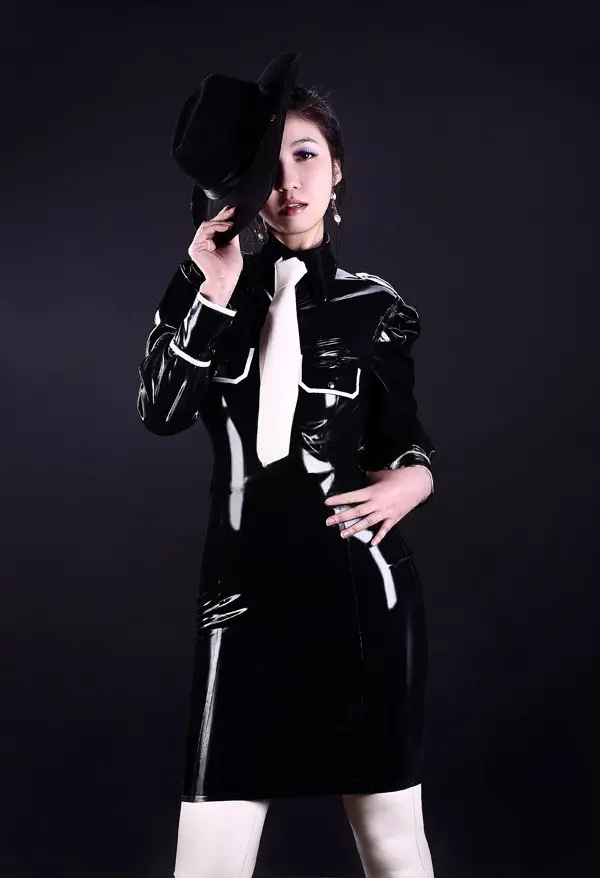 – Stylish dress with puffy sleeves and cuffs in contrast trim;