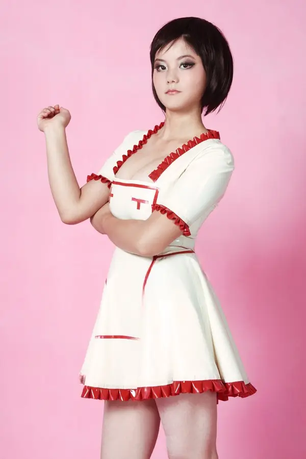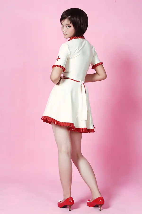 – Full-skirted mini dress designed to resemble a nurse’s uniform as shown;