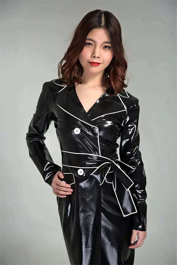– Separate wide waist belt with contrast color trim to tie in large bow as shown;