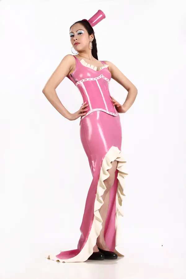 – Main color in pink, trim is white.