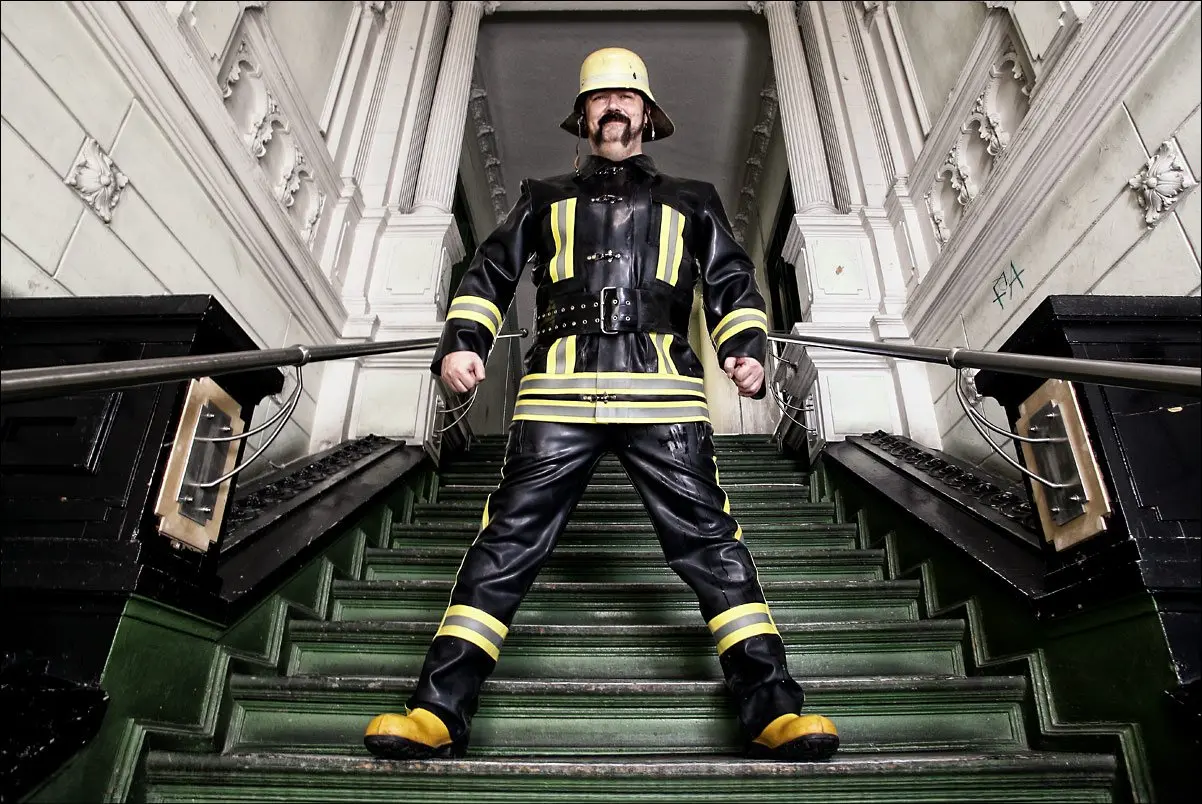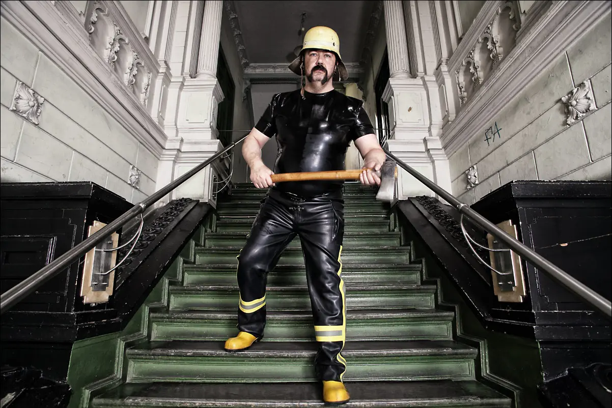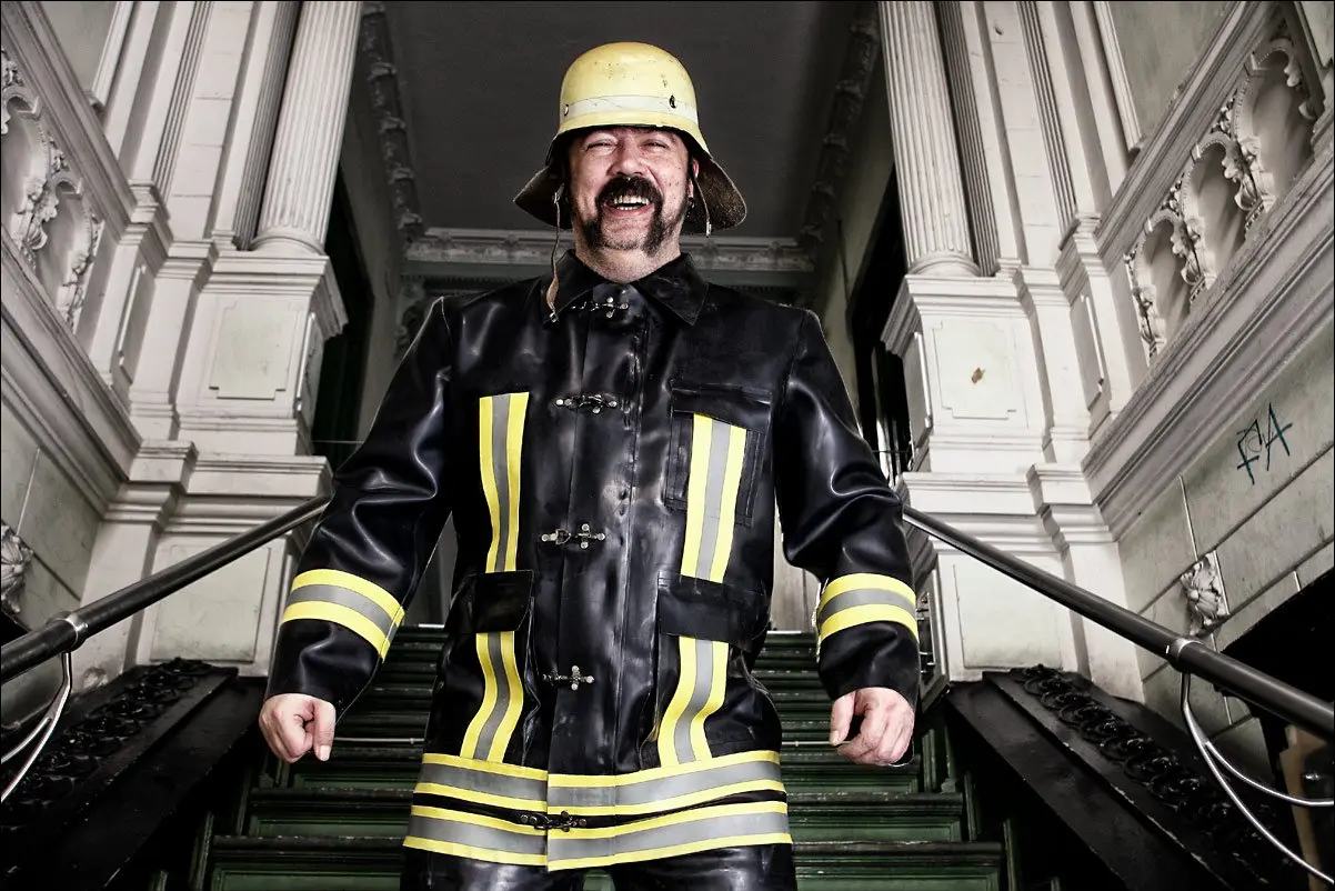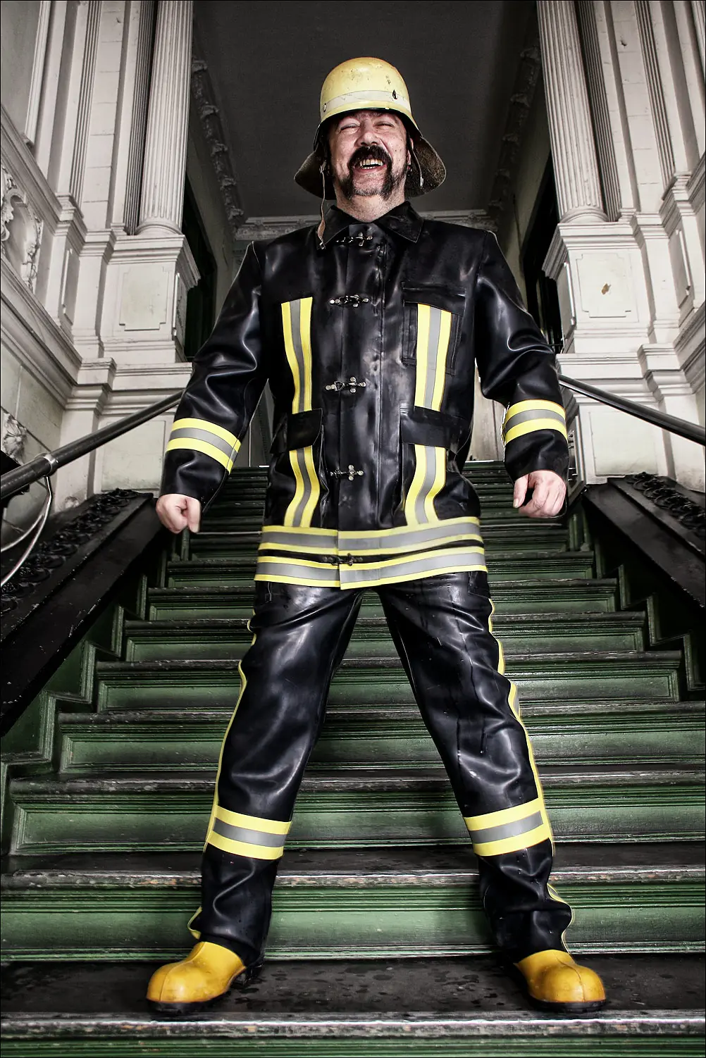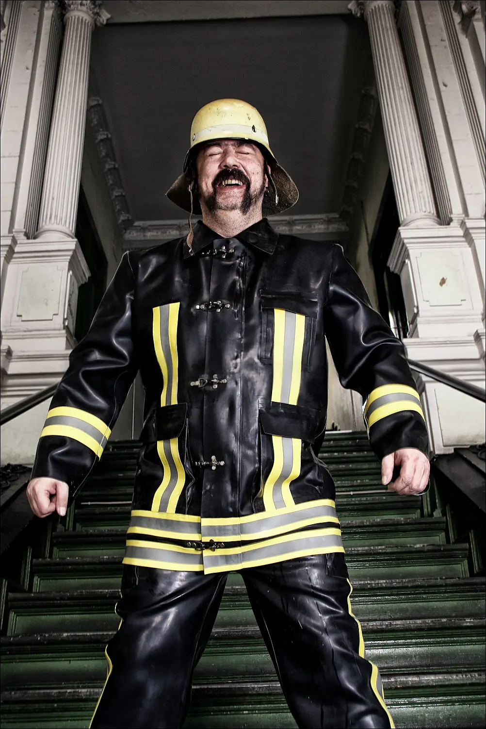 This firefighter uniform is styled closely to the German fire fighter uniform. Some adjustments where made to make it better wearable in normal situations like in a bar or during play.