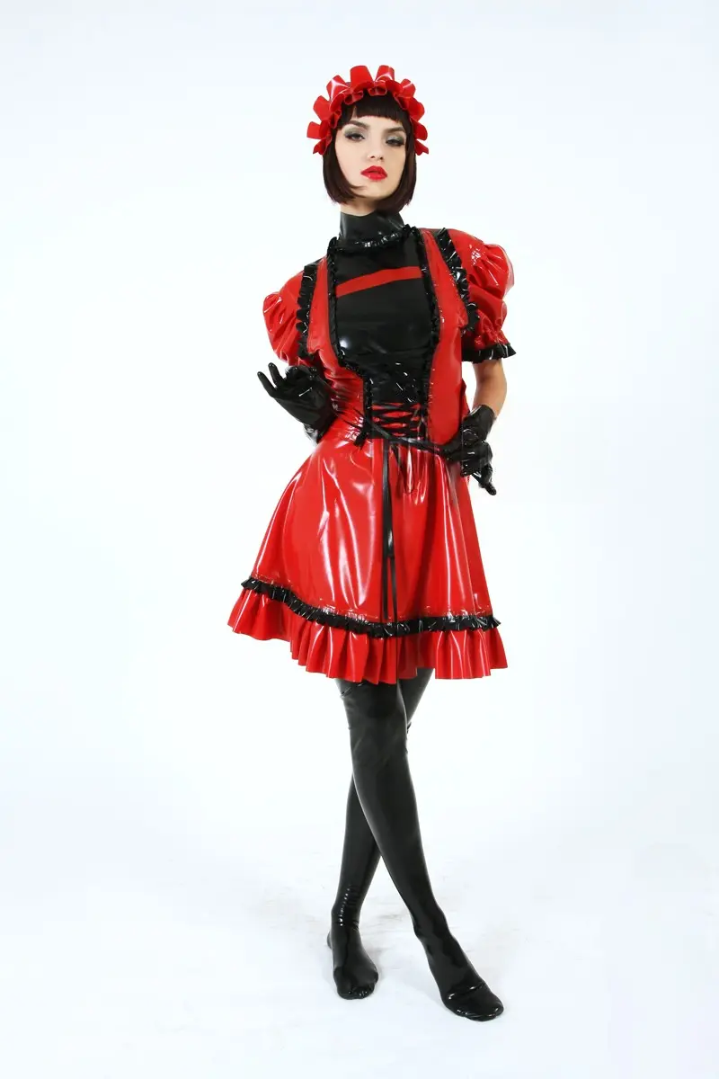 – Gathered and puffed short sleeves with contrast color and main color frilling as trim;