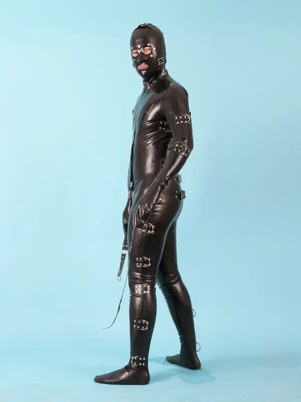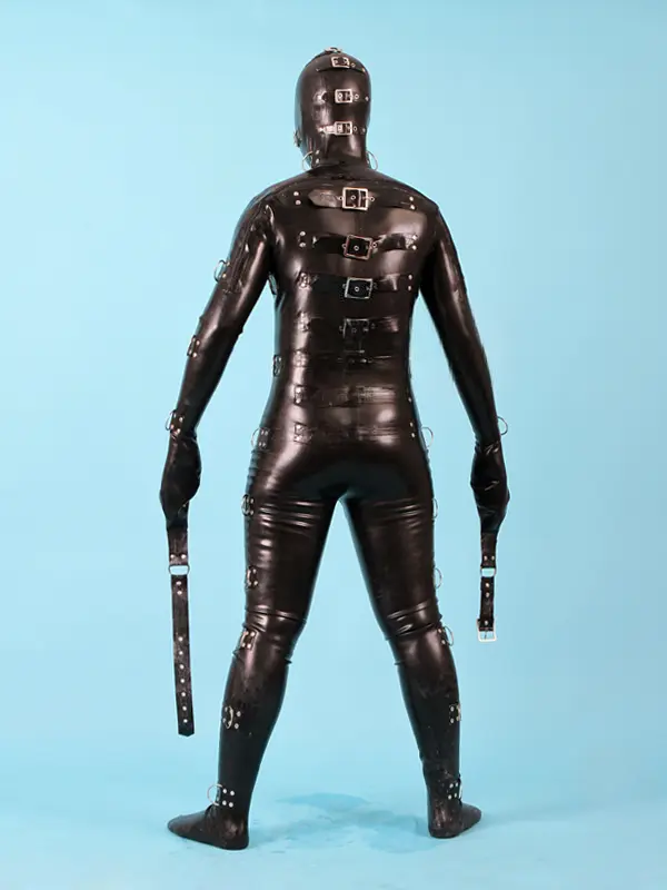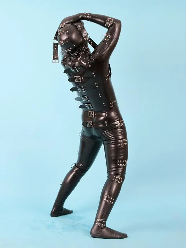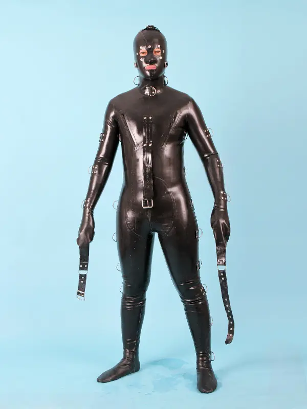– Total body heavy-dury latex catsuit with bondage fittings as shown;