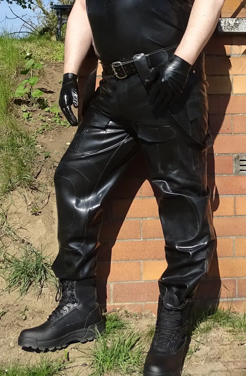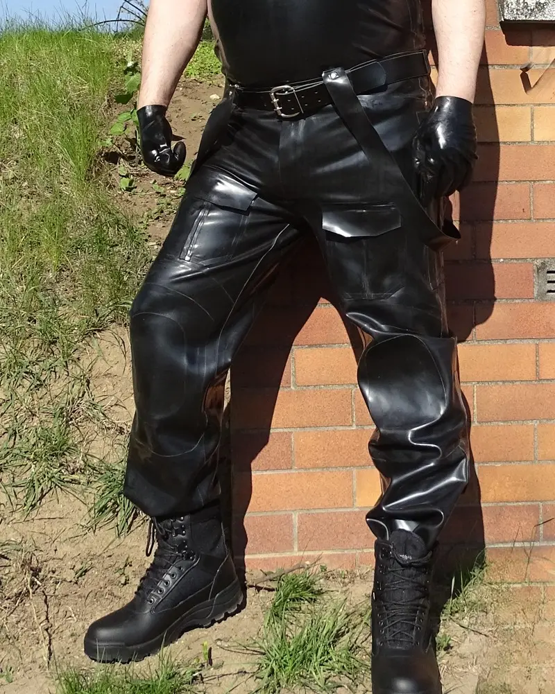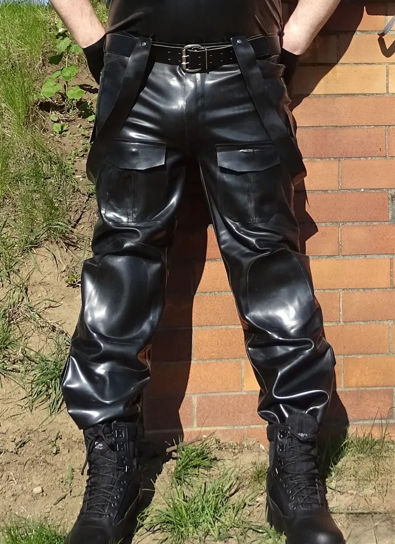 Made in the style of modern BDU pants/Army pants this rubber pants are very practical. With overall eight functioning pockets those pants are all you need as rubber skinhead.