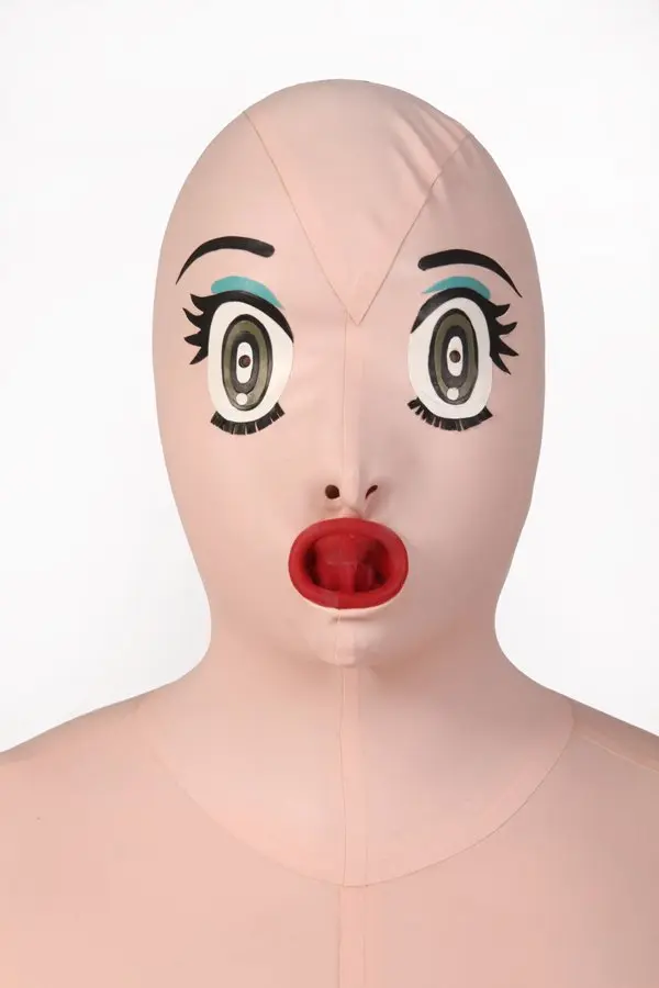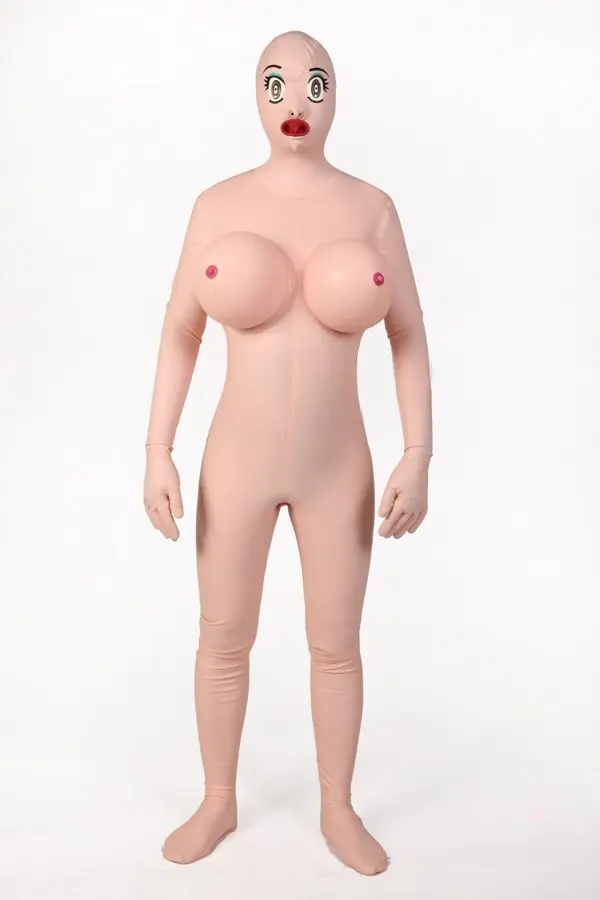 – Full body catsuit with hood, gloves and feet attached and designed to look like a doll as shown;