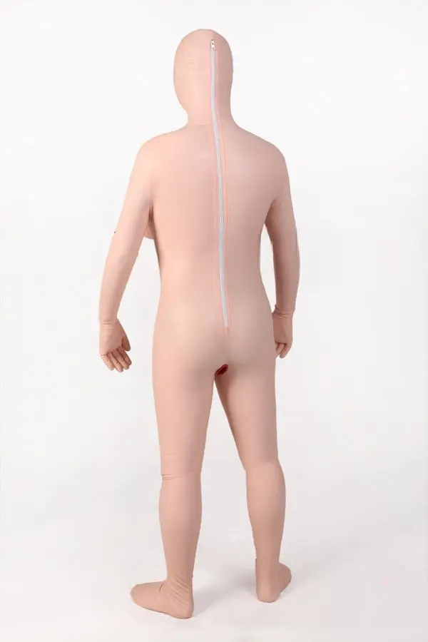 – Optional back zipper can be REQUESTED – removal of sheaths and 3-way zipper extended through crotch to the front;