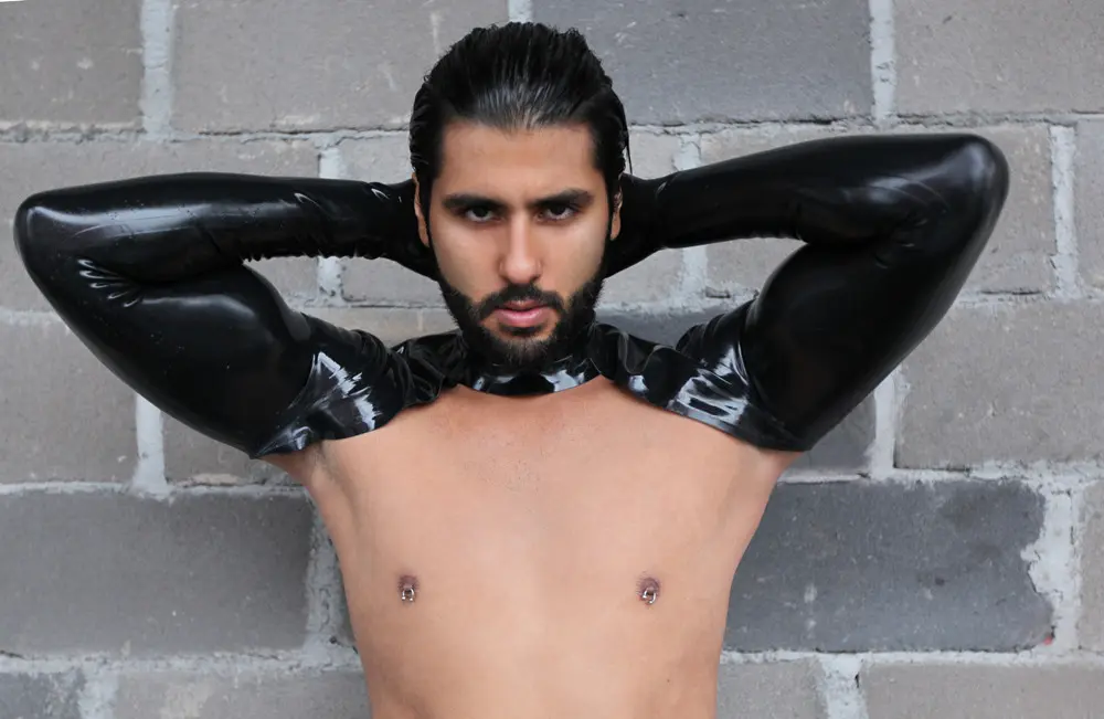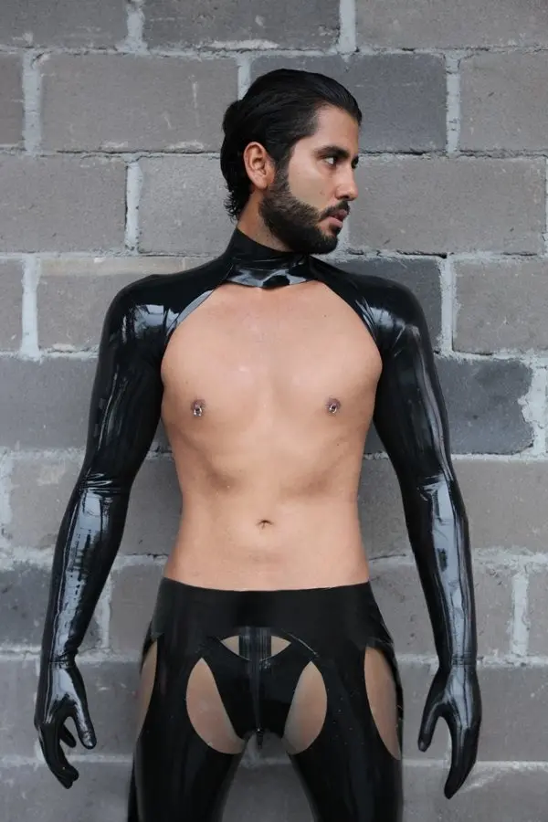 – Long-sleeved gloves linked in ‘bolero’ style slip-on top as shown;
