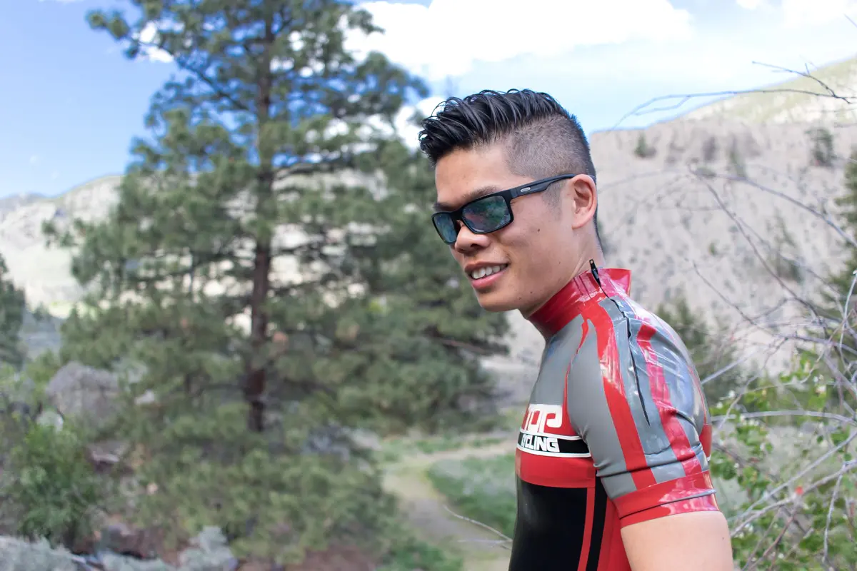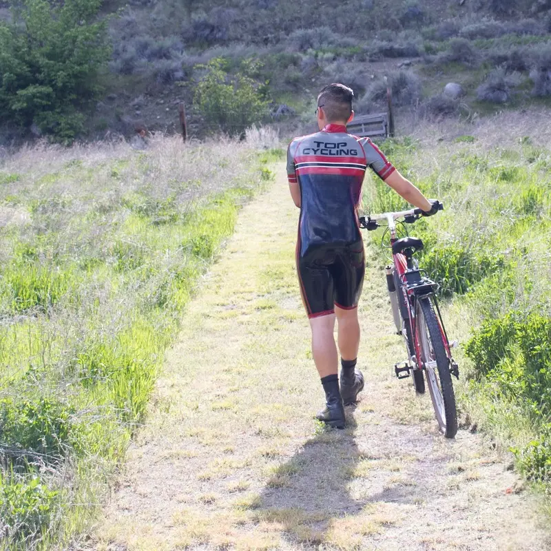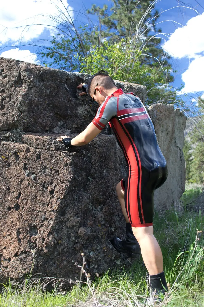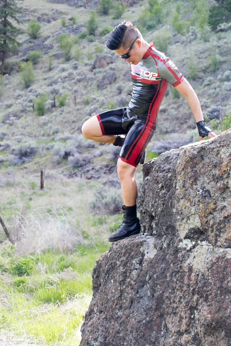 – Cycling style suit designed to resemble brand name competition cycling suit in four colors as shown;