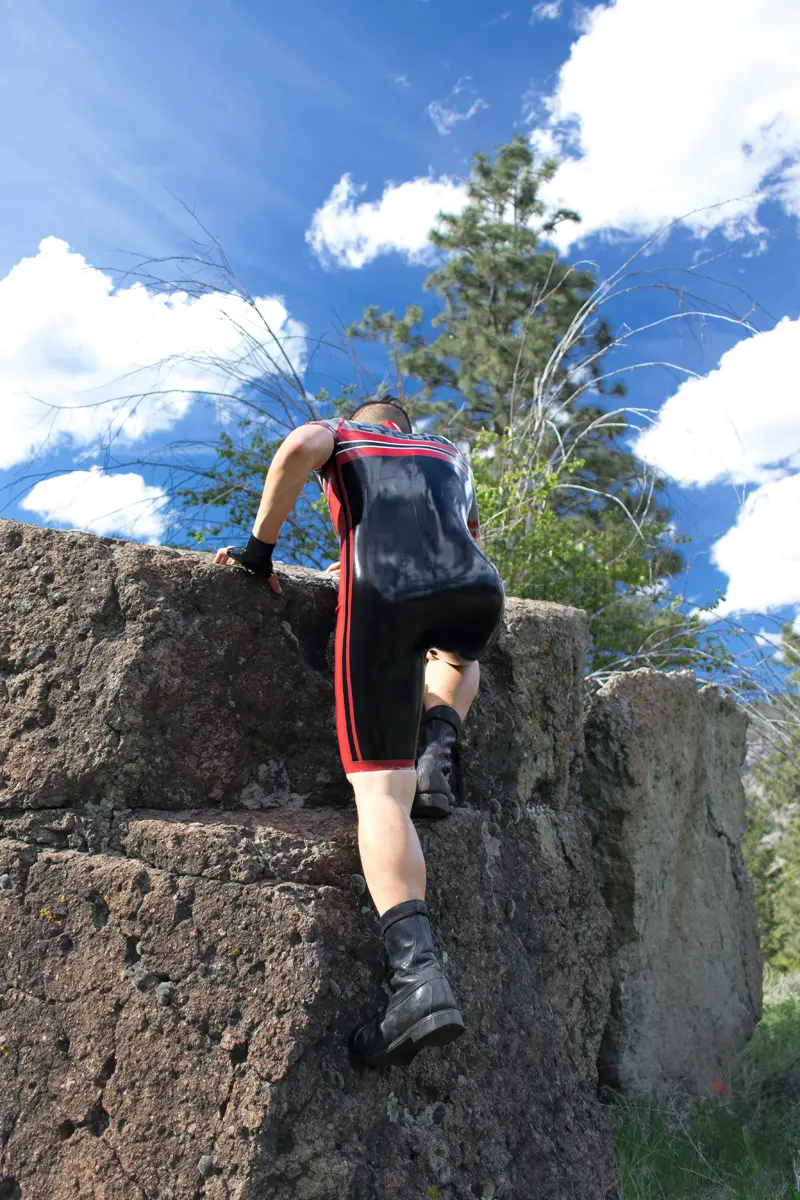 – Contrast color stripes down the sides from armpits to bottom of legs;