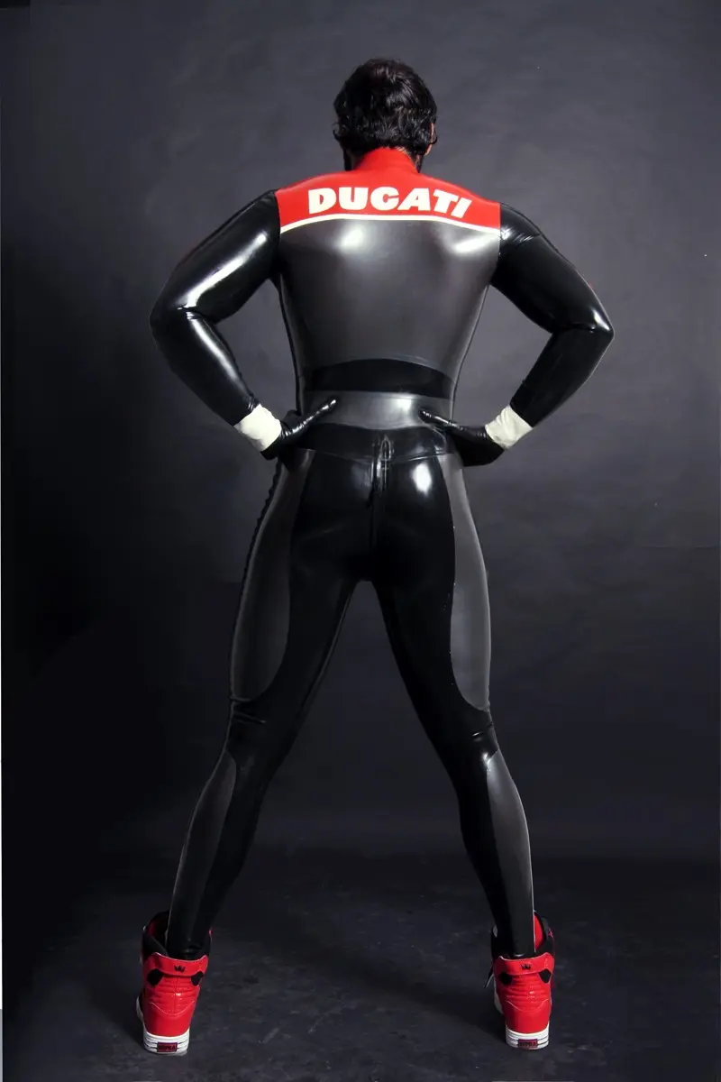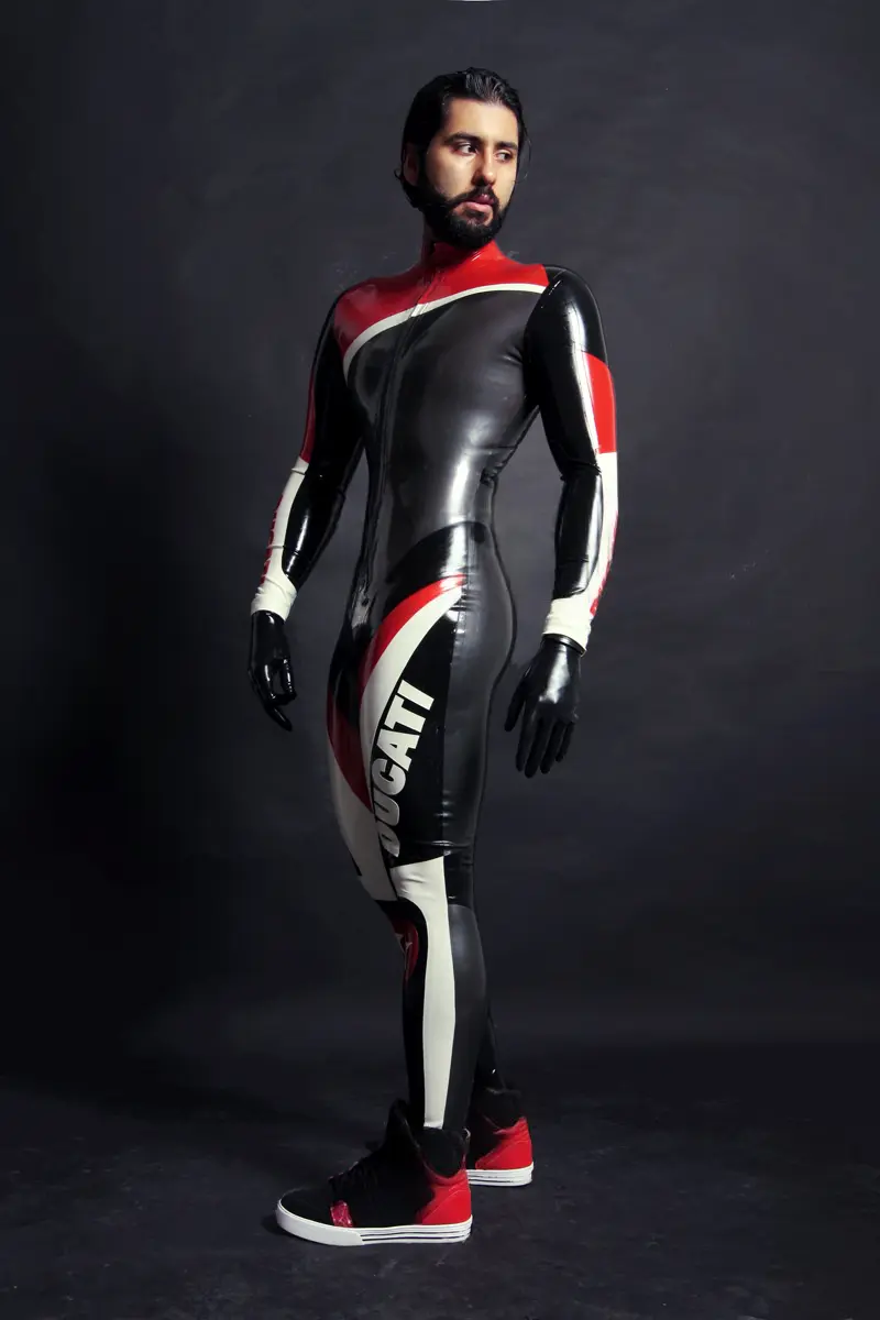 – Full catsuit designed to resemble a brand name motoGP biker leather suit in four colors as default;