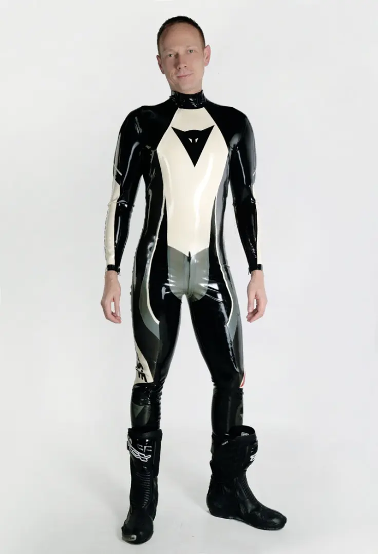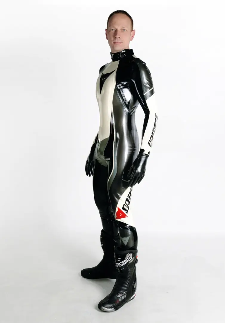 – Men’s full catsuit designed to resemble brand name motoGP biker leathers in five colors;