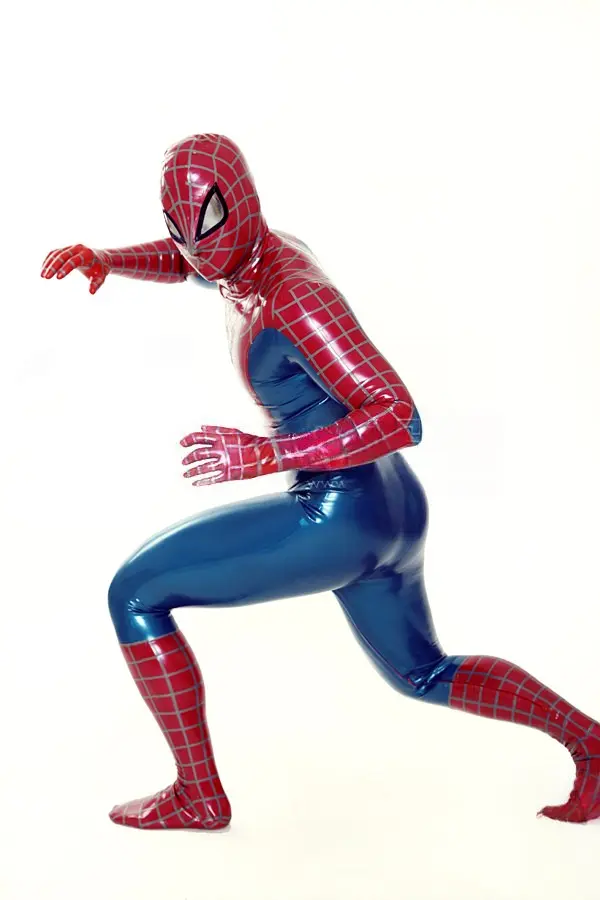 – ‘Spider-Man’ style catsuit in two colors with attached hood, gloves and socks as shown;