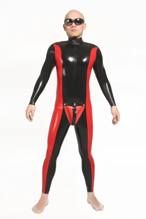 – Front codpiece with stud fasteners and contrast vertical stripe; (hole behind the codpiece);