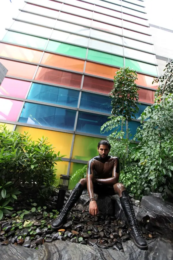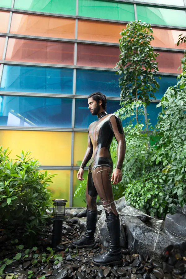 – Standard long-sleeved catsuit in two grades of latex;
