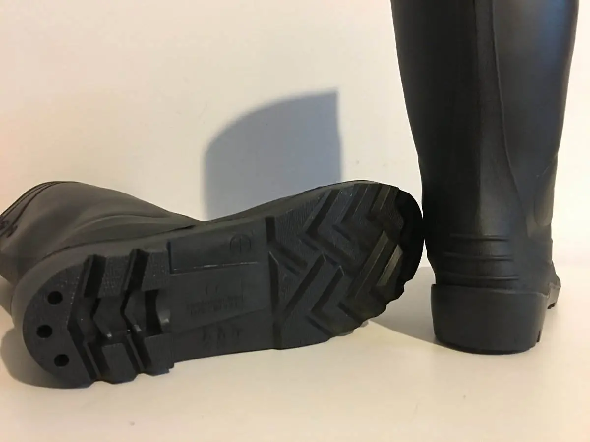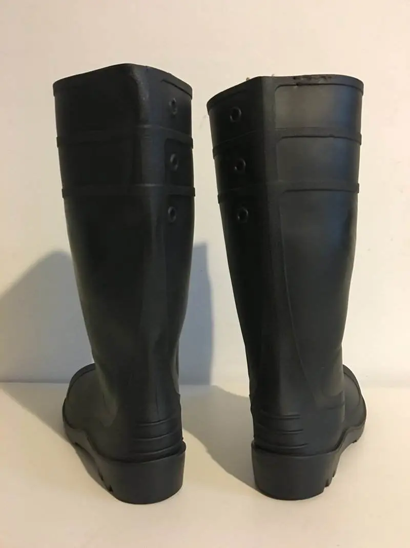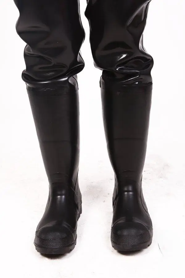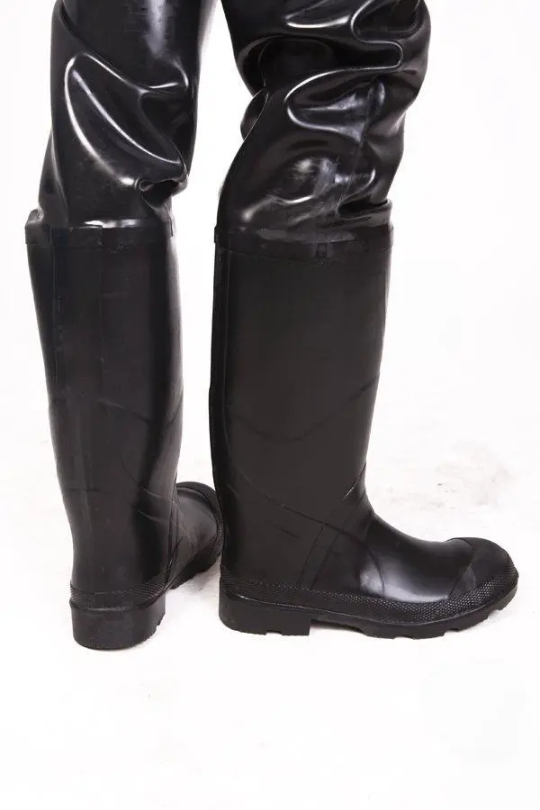 – Heavy-duty latex loose-fitting hazmat suit with attached industrial gloves and rubber boots as shown;