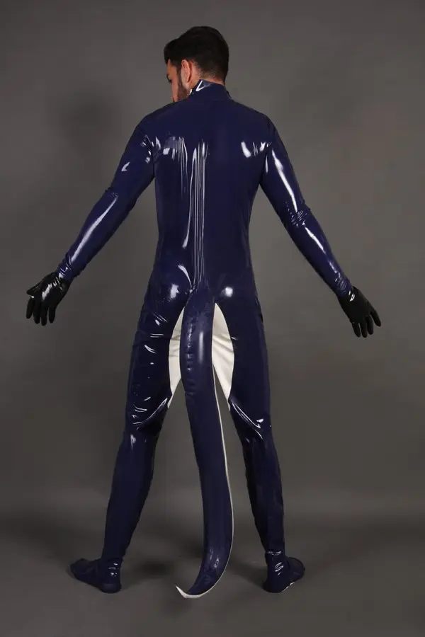 – Full catsuit in two colors designed with attached inflatable tail;