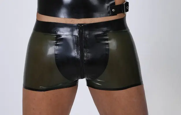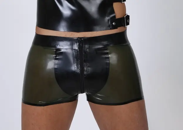 – Short-legged shorts with slightly-curved pouch shape front crotch;