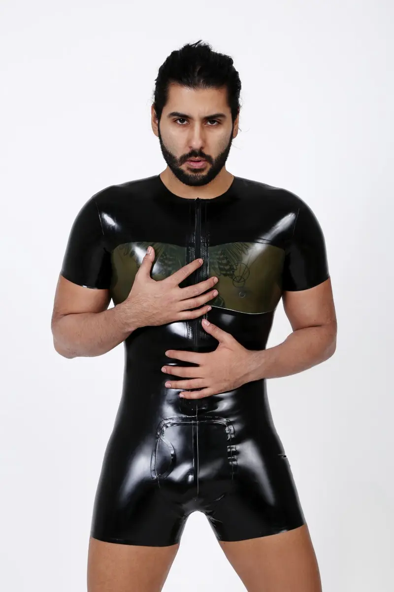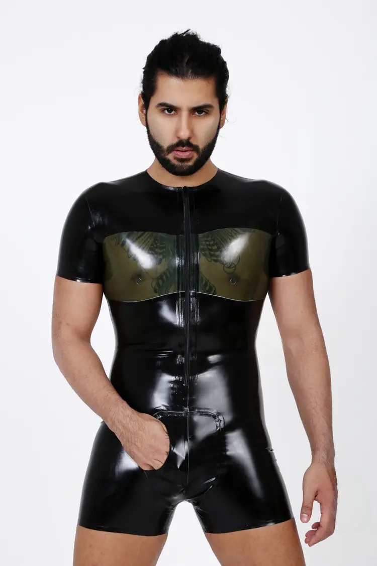 – Surfsuit styling suit with round neck, short sleeves and short legs in two colors as shown;