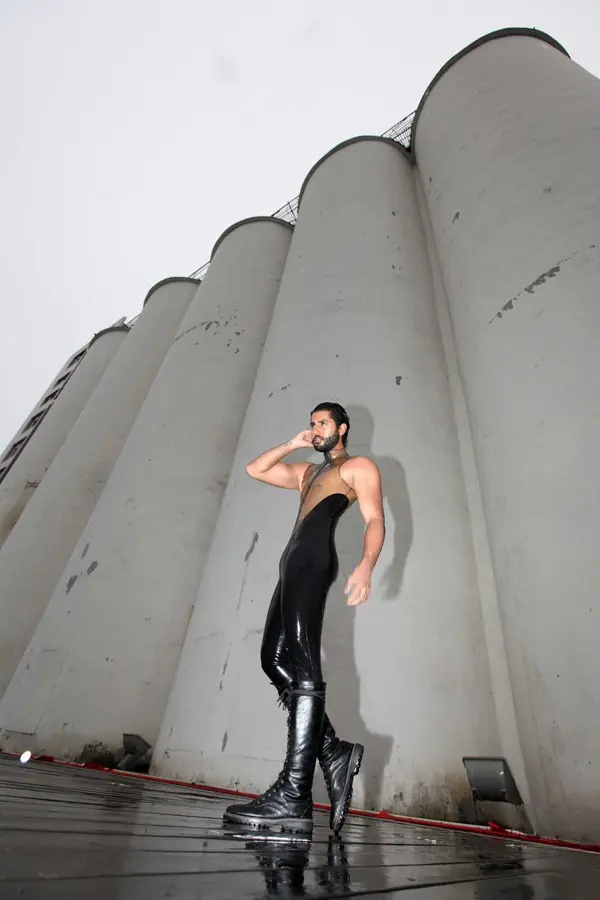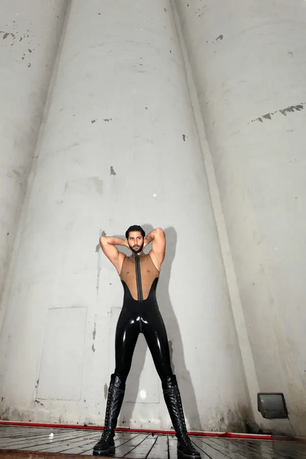 – Male catsuit without sleeves in two colors as shown;