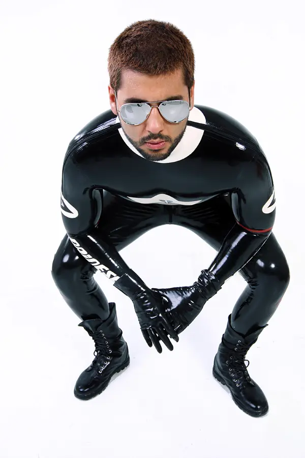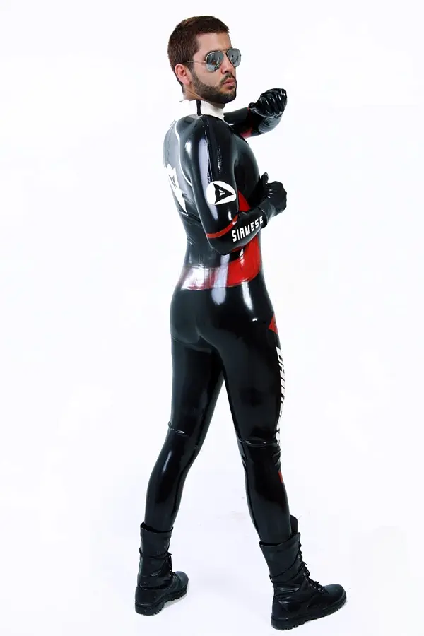 – Biker style catsuit in three colors designed to resemble a brand name leathers motoGP suit as shown;