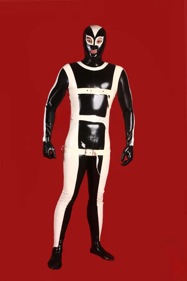 – Full body catsuit with hood, gloves and socks attached in two colours as default;