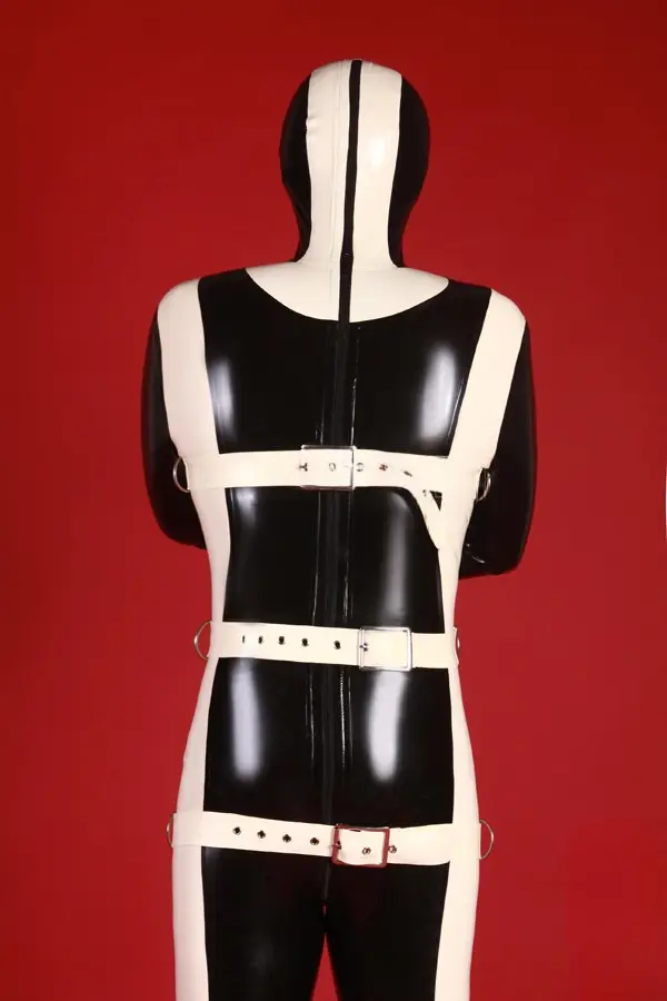 – Full-length center back 3-way zipper from top of head, through crotch to the frontt as default;