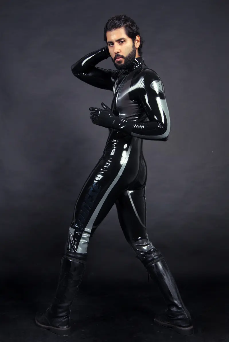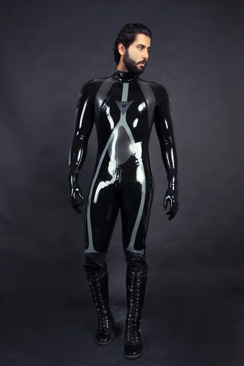– Latex full catsuit designed similar to a ‘T-Age’ style biker’s leathers in three colors;