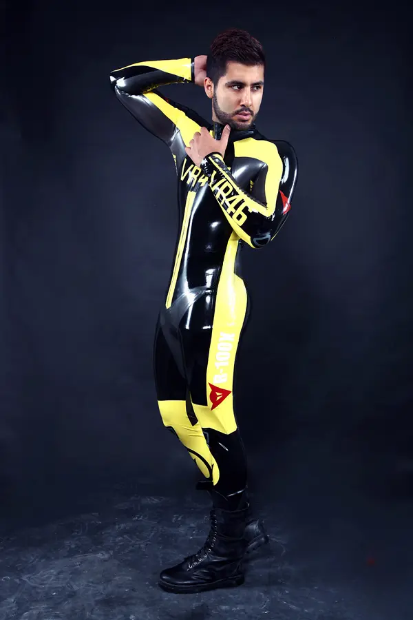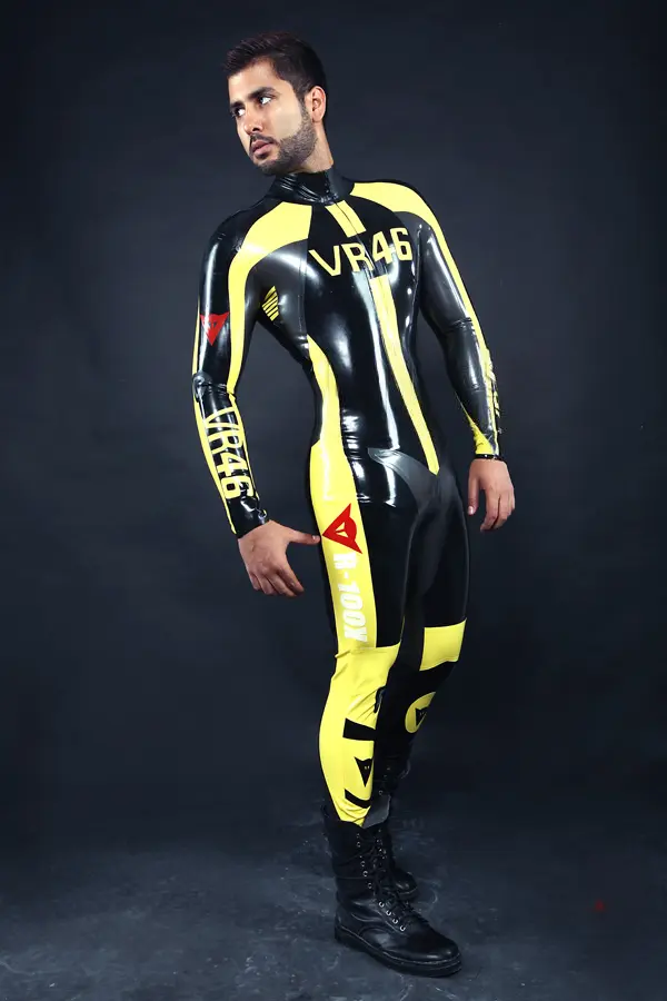 – Standard catsuit designed to resemble a motoGP biker leathers suit as a tribute to Valentino Rossi as shown;
