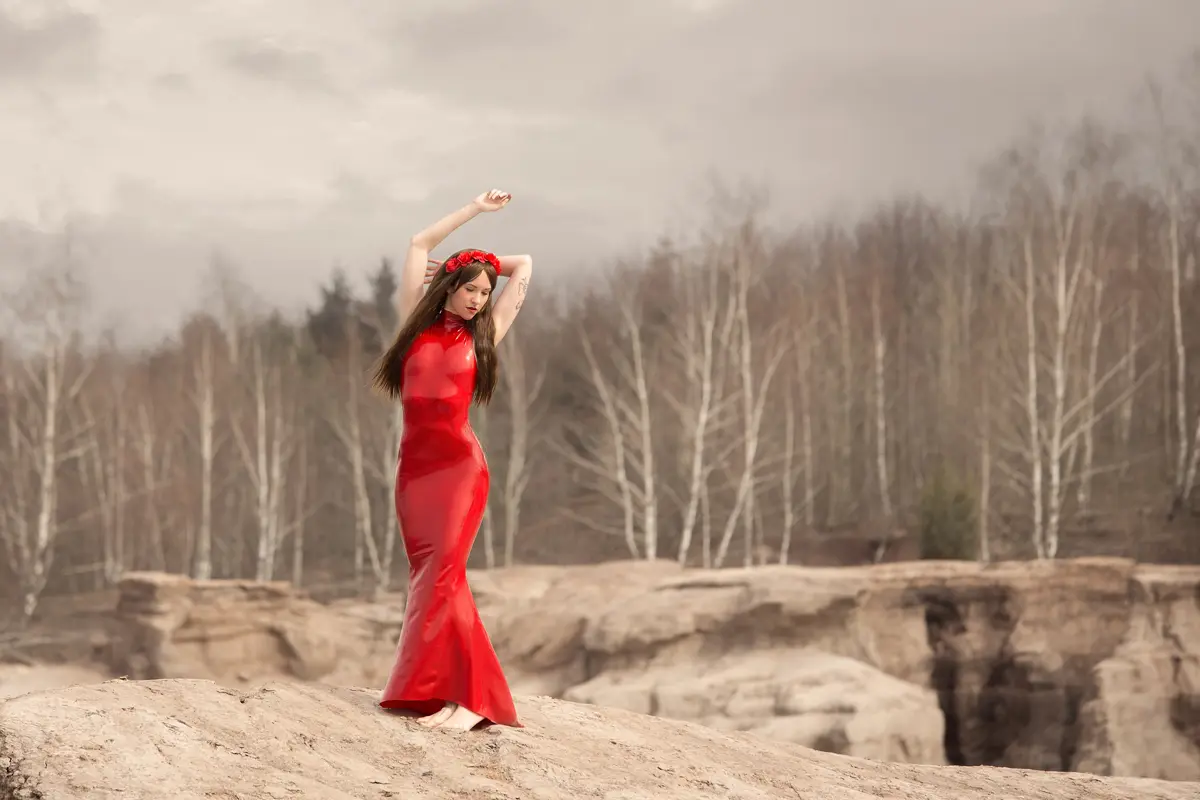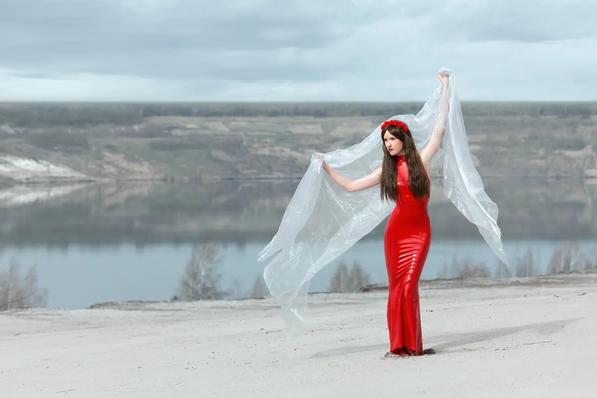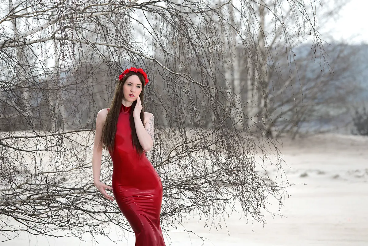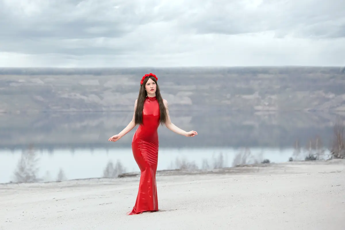 – Maxi-length tube dress in solid color with ‘mermaid’ skirt as shown;