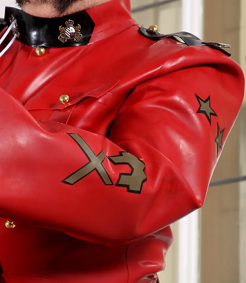 – Jacket main color in red, trim1 is metallic gold, trim2 is black;