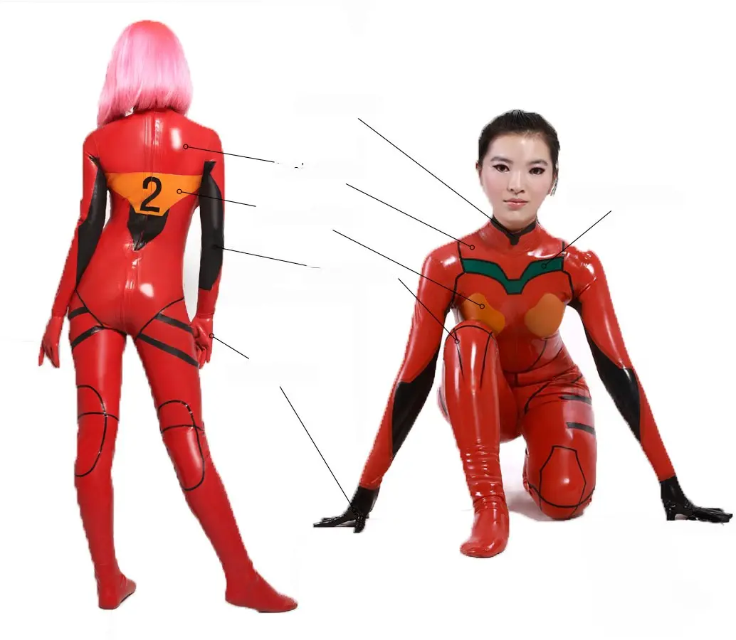 – Main color in red, trim is black, neck color is black, highlight color is metallic green, accent color is orange. Gloves color is black.