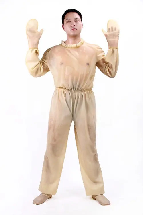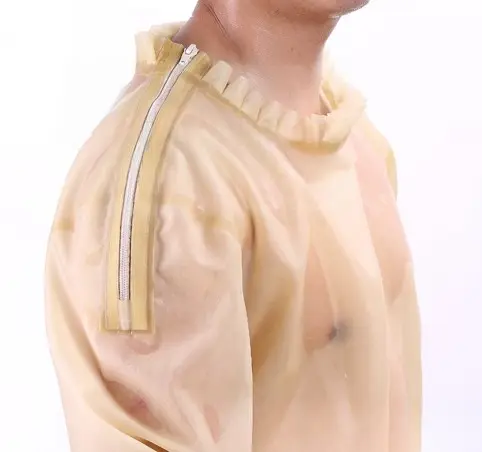 – Loose-fitting latex full body catsuit from neck to feet in transparent latex as default;